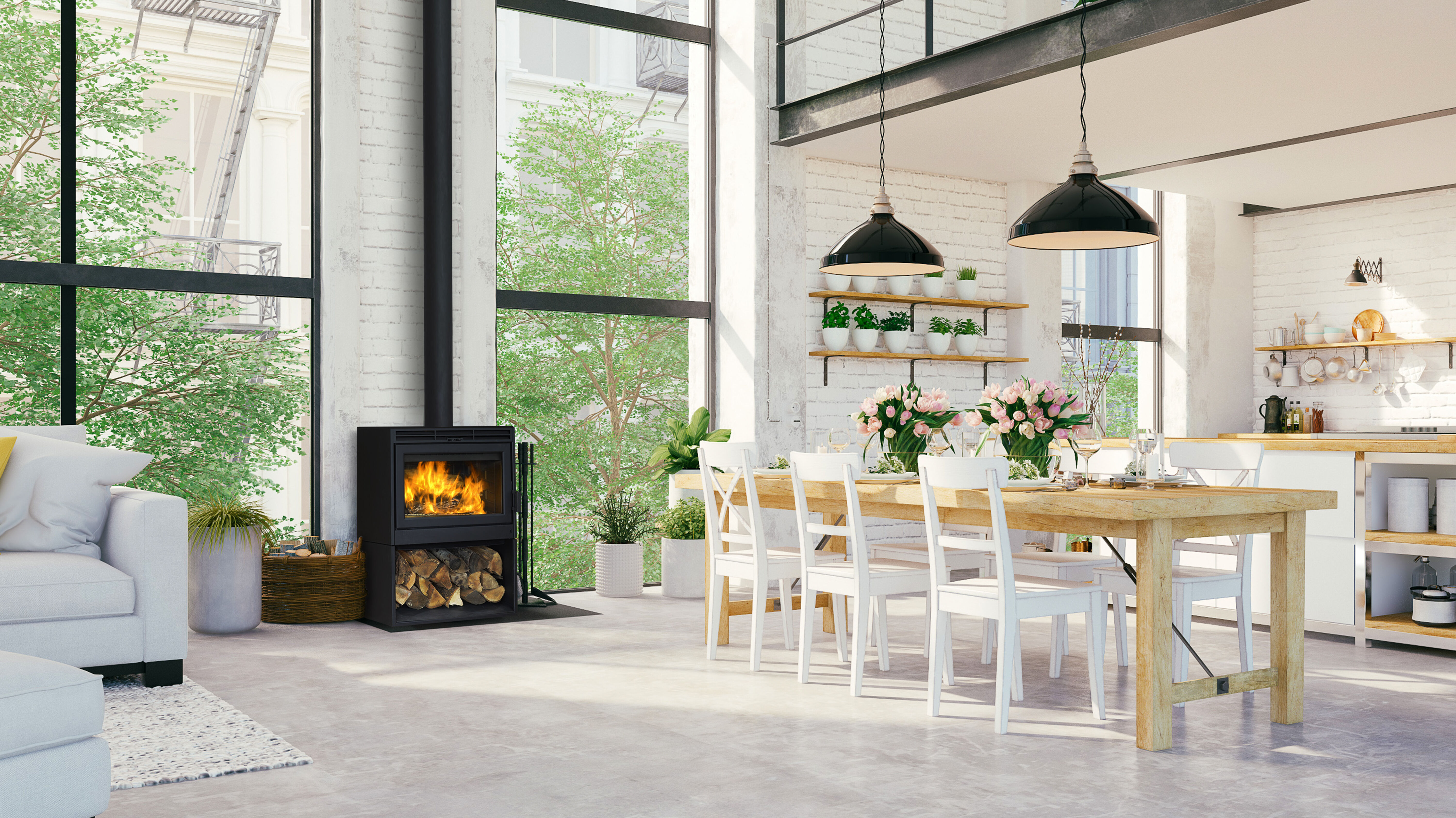 Distinguished by its clean lines, the Novo wood burning stove integrates flawlessly into every interior design scheme. It can sit directly on the floor or elevated on a podium, creating a stylish wood storage space directly underneath your stove.